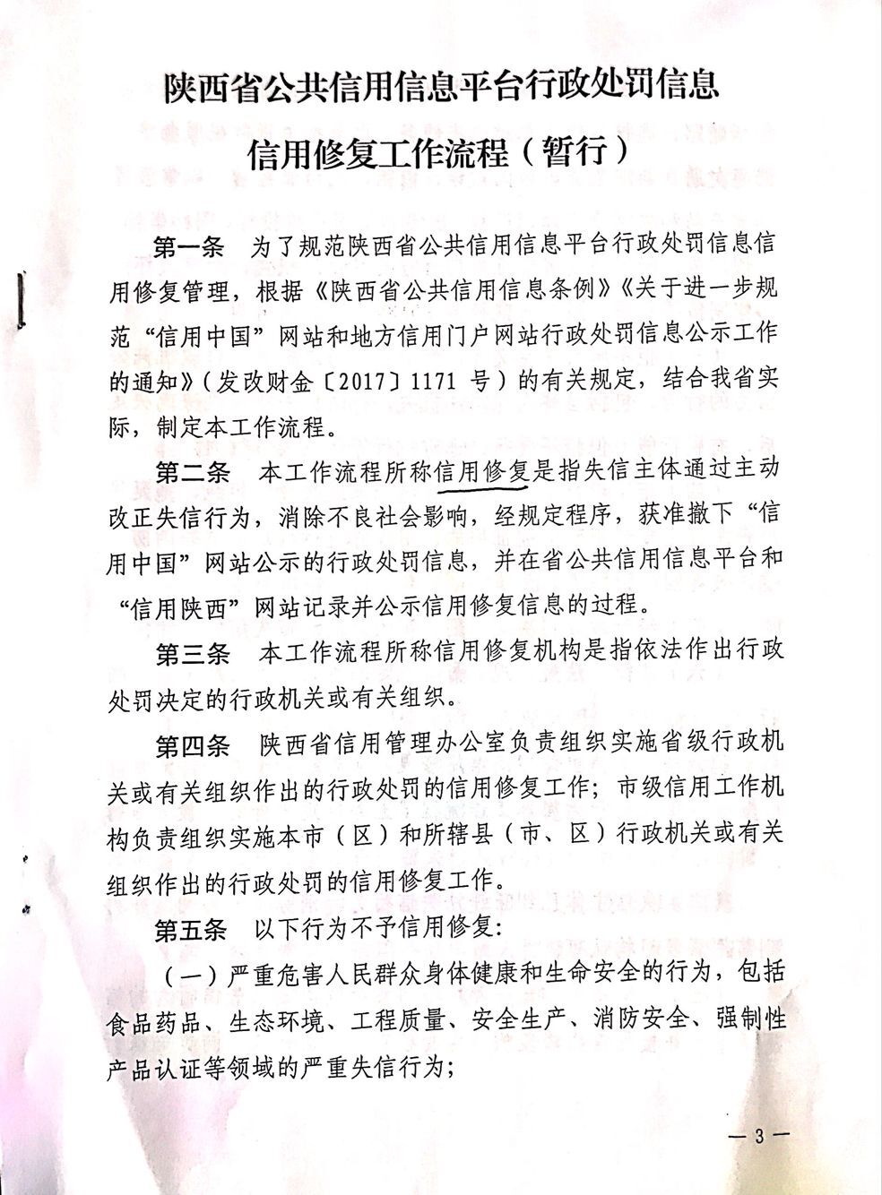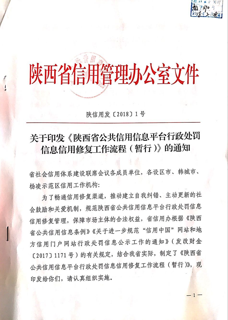 关于印发《陕西省公共信用信息平台行政处罚信息信用修复工程流程(暂行)》的通知