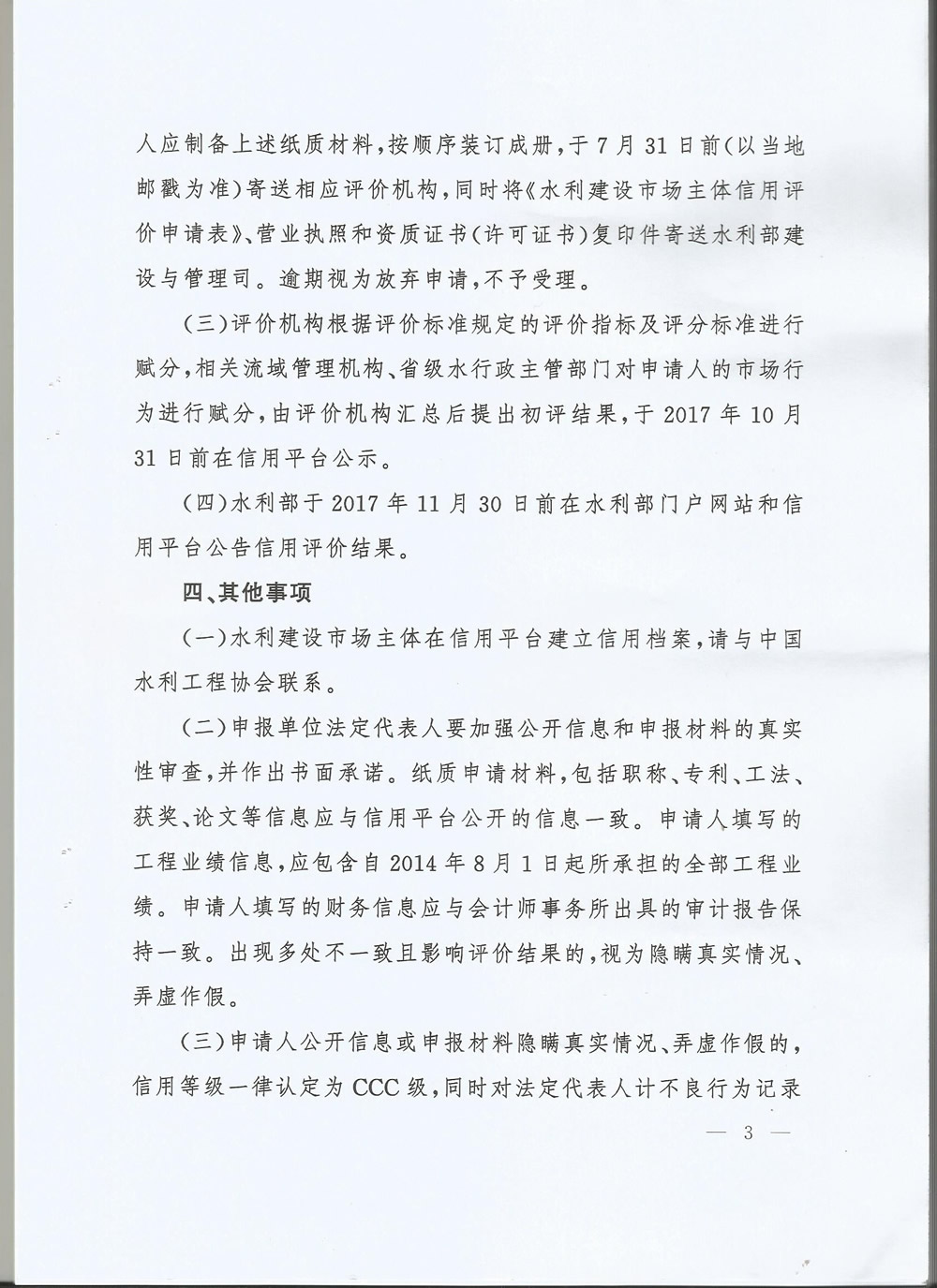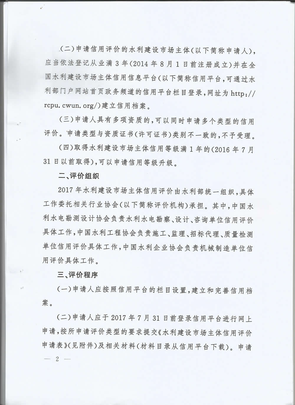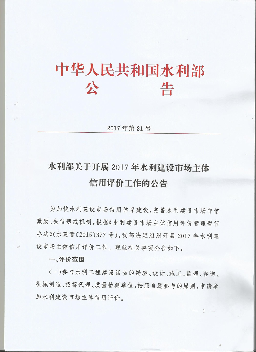 水利部关于开展2017年水利建设市场主体信用评价工作的公告