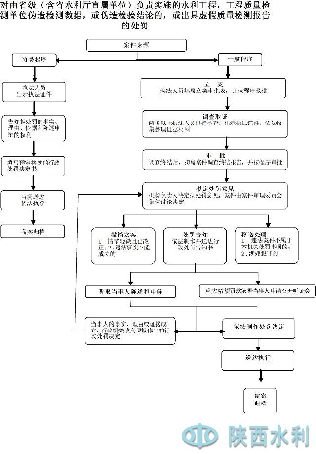 办理依据 《建筑工程质量管理条例》(国务院2000年第279号令)第四条 县级以上人民政府建设行政主管部门和其他有关部门应当加强对建设工程质量的监督管理。第四十五条 检测报告应当有符合资格的检测人员、审核人、批准人签字,并加盖检测专用章。工程检测应当执行见证取样送检制度。检测单位对见证、送检情况应当如实、全面记录。 检测单位不得伪造检测数据和检测结论。 《水利工程质量检测管理规定》(水利部2006年第36号令)第二十八条 检测单位伪造检测数据,出具虚假质量检测报告的,由县级以上人民政府水行政主管部门给予警告,并处3万元罚款;给他人造成损失的,依法承担赔偿责任;构成犯罪的,依法追究刑事责任。 《水利工程质量管理规定》(水利部1997年第7号令)第四十五条 检测单位伪造检验数据或伪造检验结论的,根据情节轻重,予以通报批评、降低资质等级直至收缴资质证书。因伪造行为造成严重后果的,按国家有关规定处理。