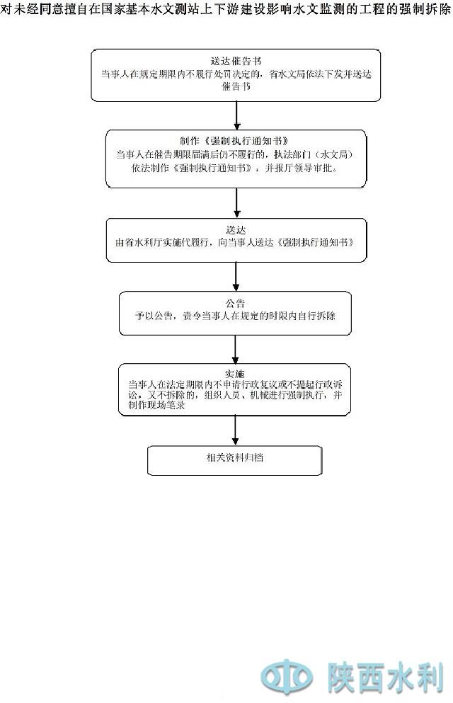 事项名称 对未经同意擅自在国家基本水文测站上下游建设影响水文监测的工程的强制拆除