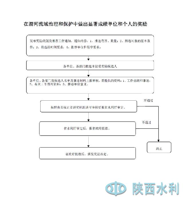 办理依据 《陕西省渭河流域管理条例》第八条 县级以上人民政府对在渭河流域治理和保护工作中做出显著成绩的单位和个人,应当给予表彰奖励。