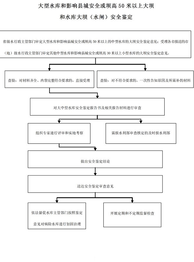 事项名称 大型水库和影响县城安全或坝高50米以上大坝和水库大坝(水闸)安全鉴定
