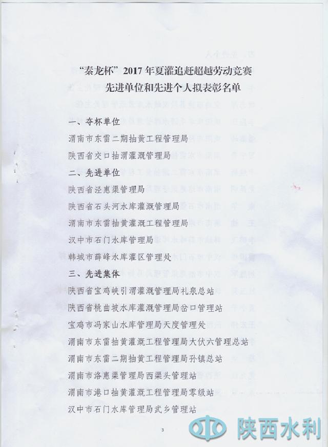 关于表彰“秦龙杯”2017年夏灌追赶超越劳动竞赛先进单位先进集体和先进个人的公示