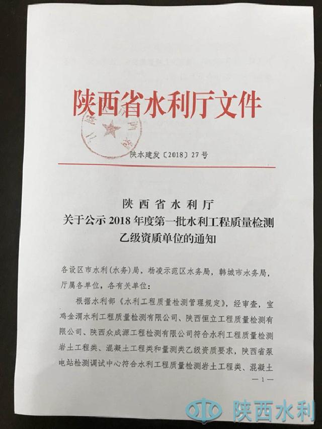 365 com线路检测关于公示2018年度第一批水利工程质量检测乙级资质单位的通知